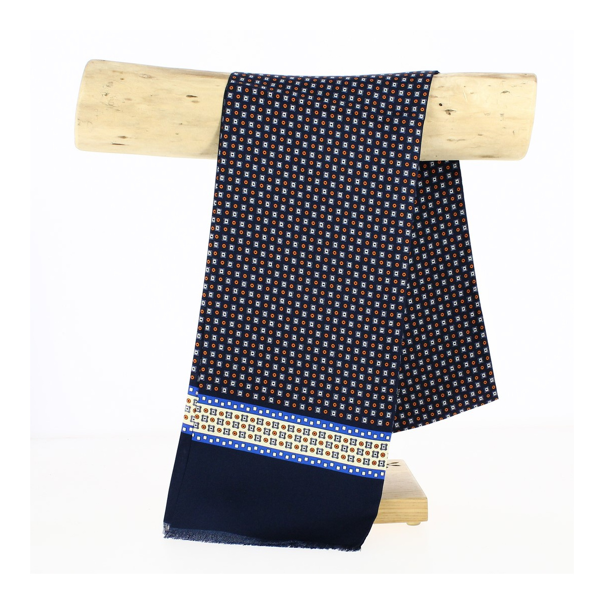 Another beautiful silk scarf, very fine, satin texture, very soft offered by the Traclet house. Both very elegant and refined, it will pair very well with a suit or dressy outfit under a coat. A dark green fabric with orange and blue floral patterns to keep you warm with style.