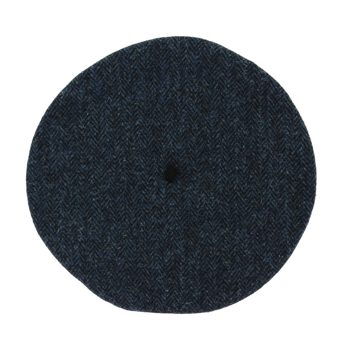 Monty style beret in Harris tweed, which means pure wool in navy blue color.