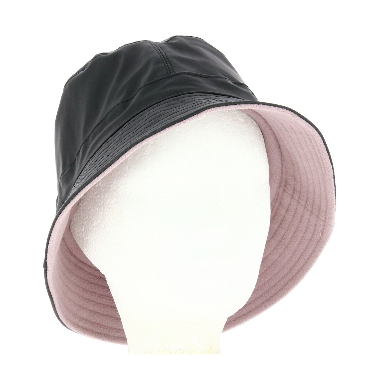 Black Faux Leather Bucket Hat with Colored Fleece Lining - Traclet