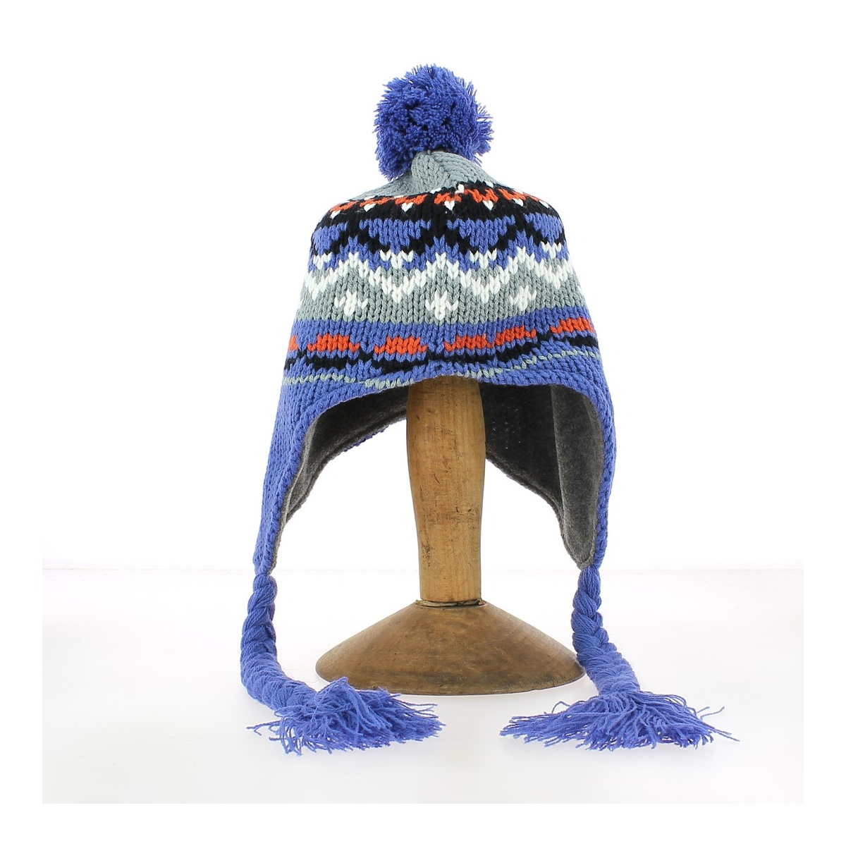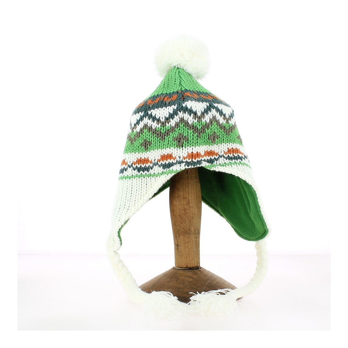 A superb Peruvian beanie with pompoms for children lined with fleece for incomparable softness and warmth. It will keep your child's head warm during winter.