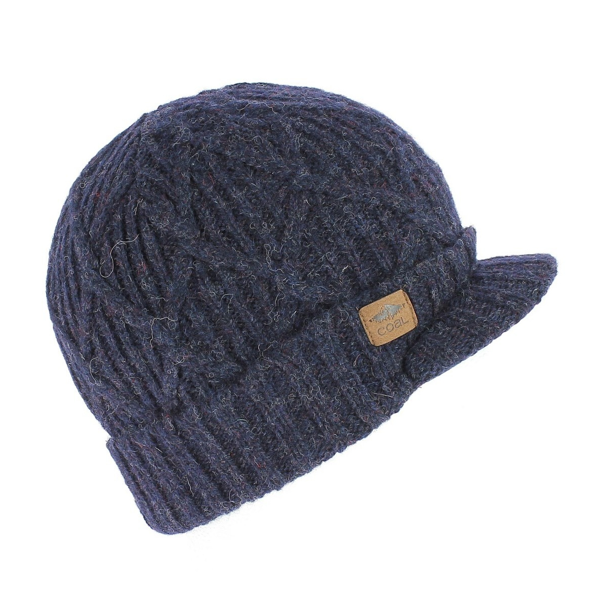 Brimmed beanie in navy blue for men and women with fleece lining and Coal logo stitched on the right side.