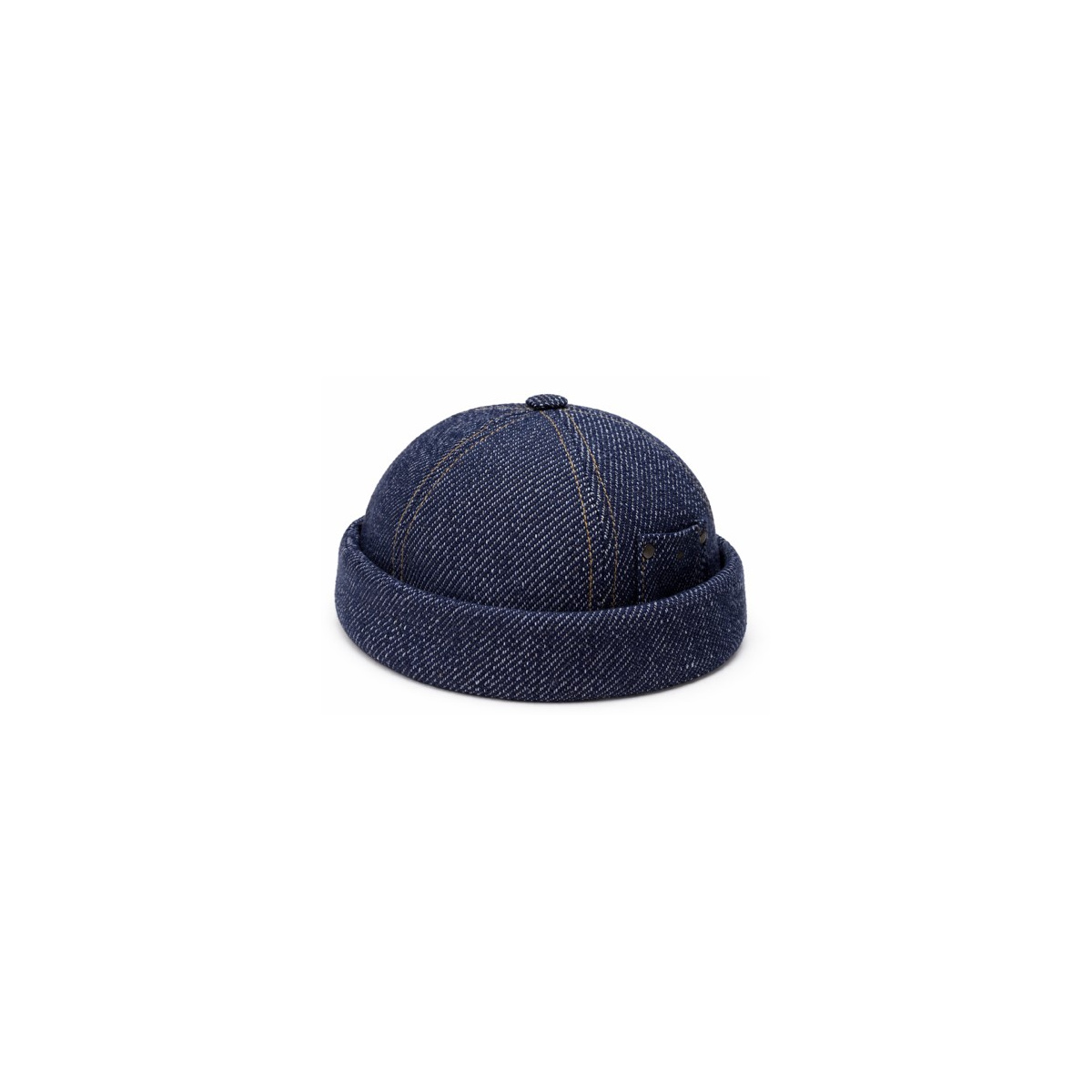 Its dark denim color gives it a modern, versatile character that easily matches all outfits. This beanie is ideal for those seeking a bold style, between vintage, streetwear and utilitarian spirit.