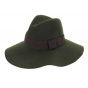 The Brixton Piper, a beautiful feminine wide brim hat made from 100% wool felt in OLIVE color with generous 11 cm brims.