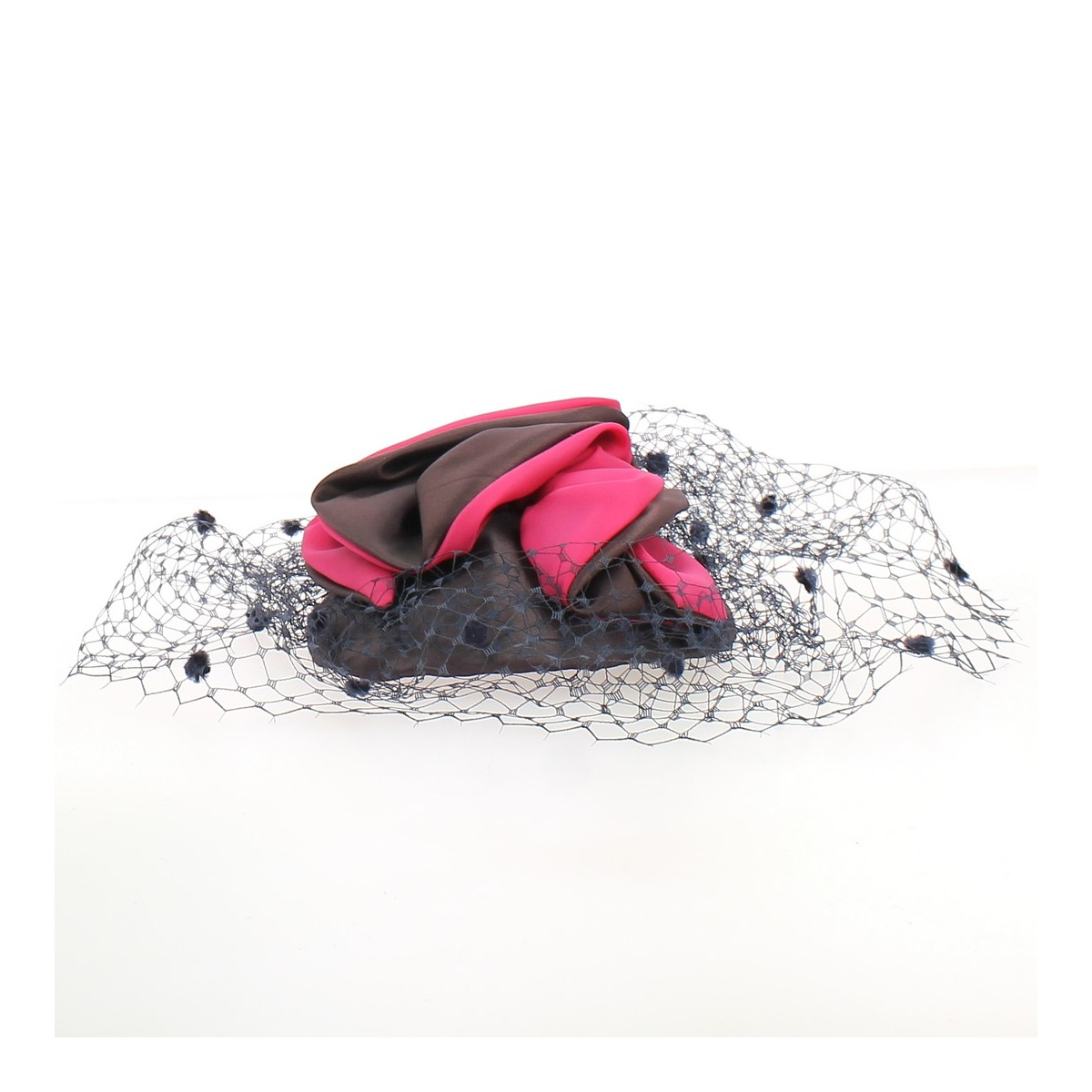 Brown & Fuchsia satin Tambourine black veil - Chapellerie Traclet - France
