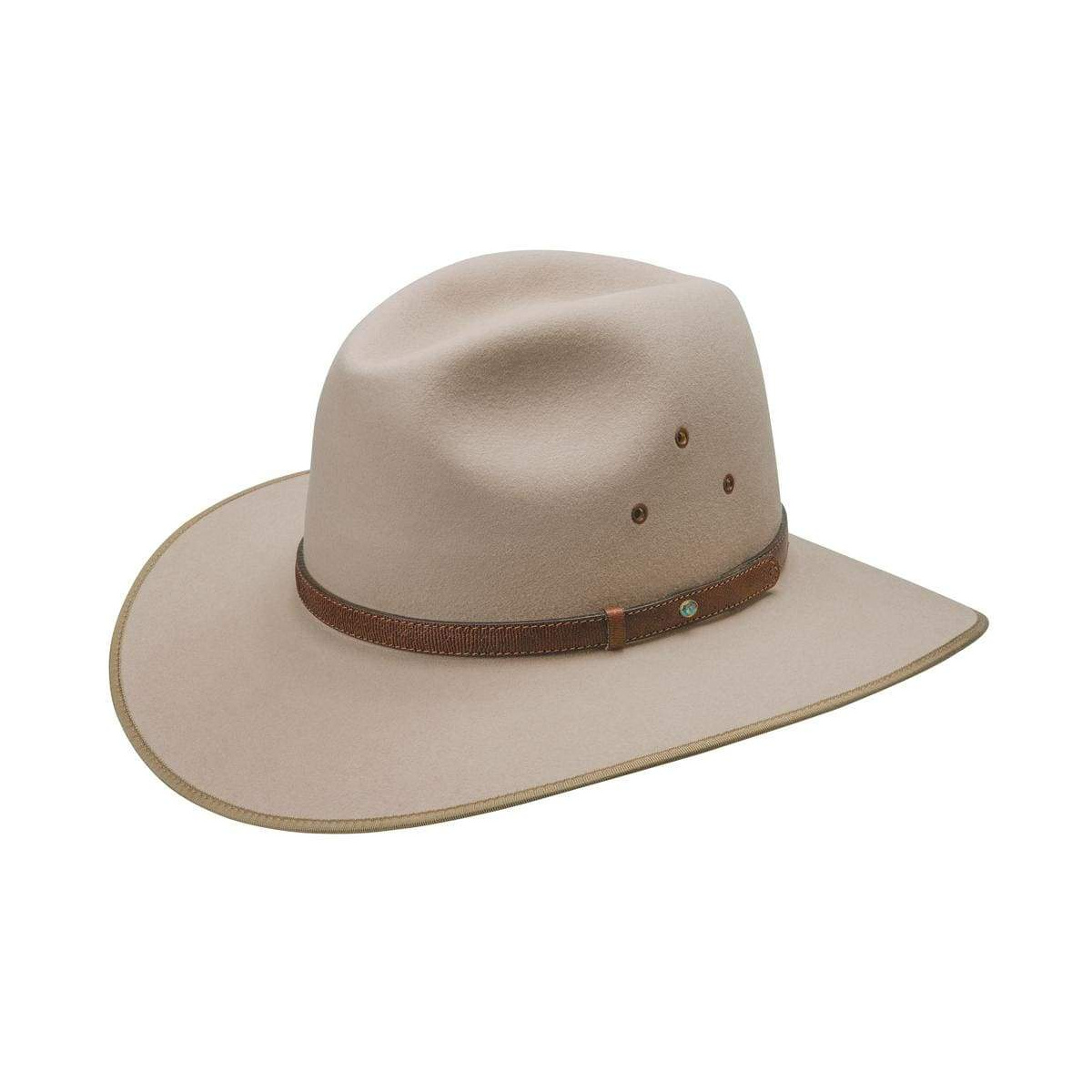 The pre-creased crown is 4 inches high at the front, 4-1/2 inches on the sides, its eyelets are fully lined. The rabbit felt is pure rabbit fur; the Akubra quality type is: Imperial Akubra.