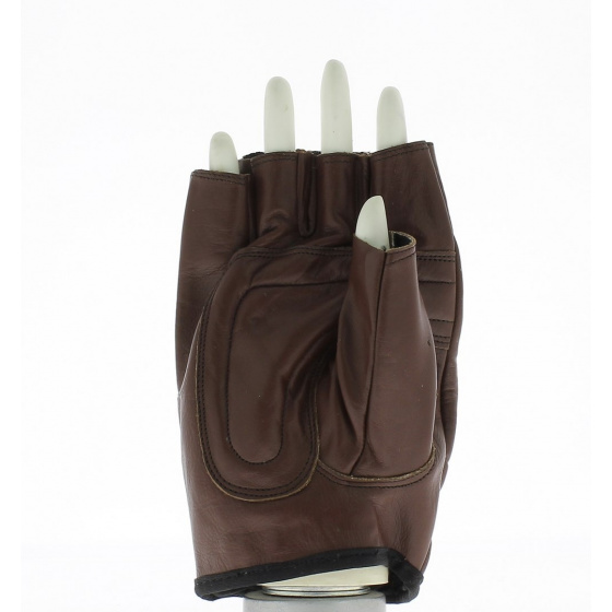 This superb pair of leather gloves made of soft and durable lambskin is perfect for bikers. It protects hands from cold and friction. These elegant fingerless gloves close with a button.