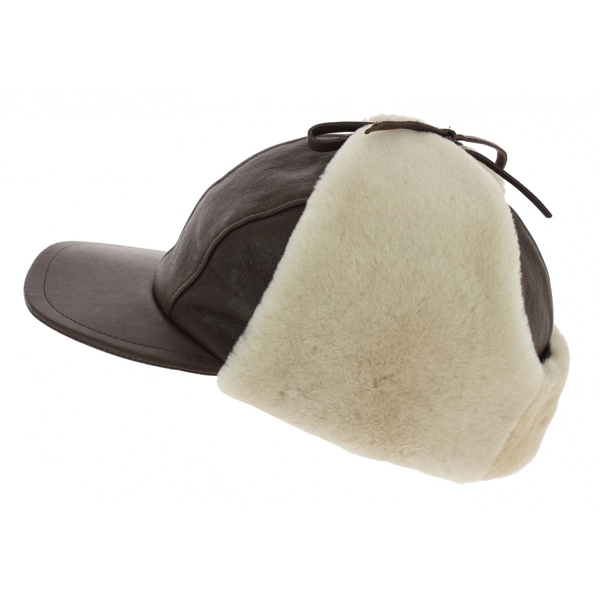 A shape between a cap and a ushanka handmade in Italy by the Traclet brand, using high-quality materials with a brown leather exterior and lamb fur.