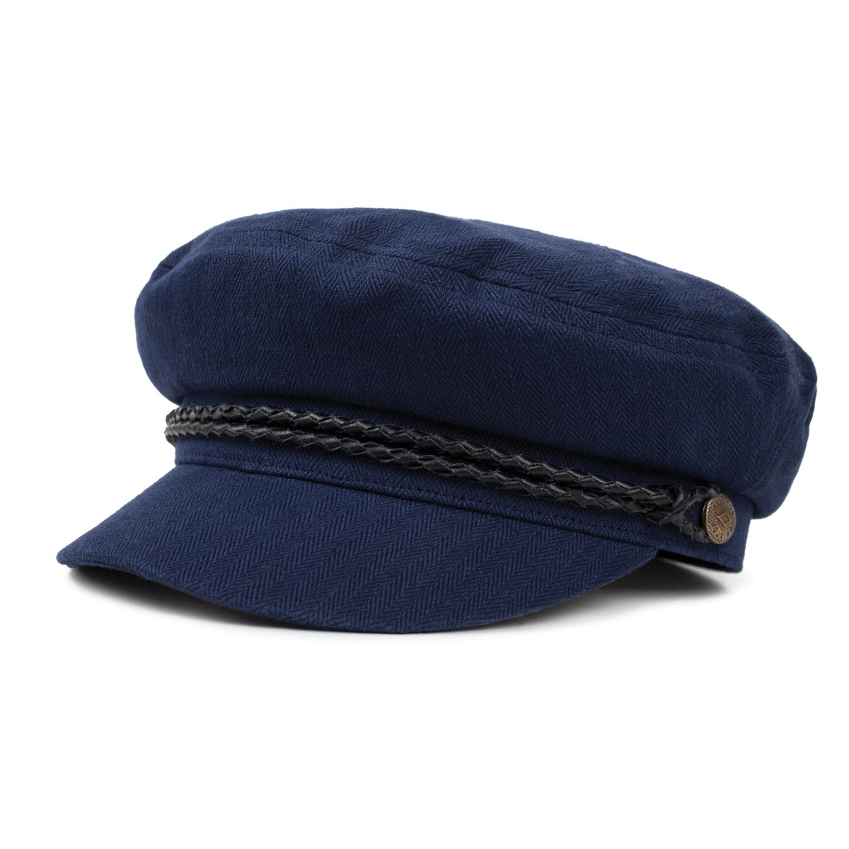 A unique and quality sailor cap, made entirely of cotton, which will bring you all the softness and freshness needed for your head to withstand hot summer temperatures. Its black strap, located at the front of the cap, is a detail that identifies the classic style of the sailor cap. This strap is held by two golden Brixton buttons.