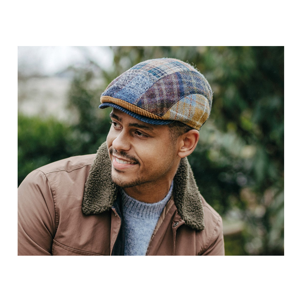 The Baxter Domed Cap revisits the traditional English cap shape with a refined patchwork finish. Signed by Göttmann, a brand renowned for the quality of its hats, it stands out with its harmonious assembly of wool fabrics, giving each piece a unique personality.