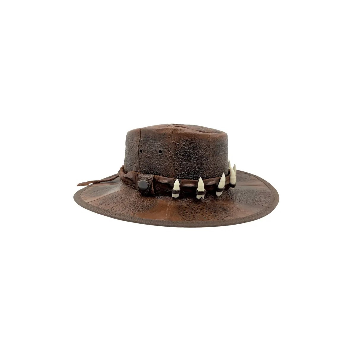 The Outback hat in croco tooth leather tan color – Jacaru is a robust and authentic model, inspired by the Australian universe. Made from quality leather, it stands out with its croco tooth relief that brings character and originality.