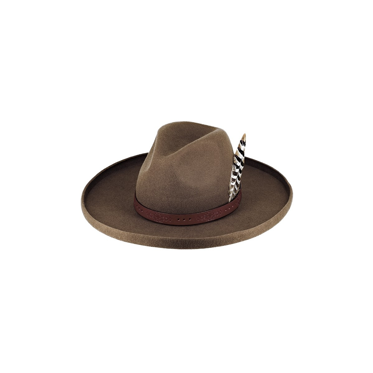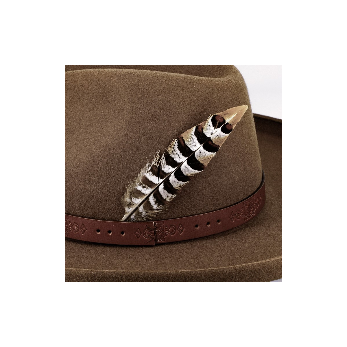 Its warm and elegant cognac shade brings a touch of originality while remaining easy to match with both formal and more casual outfits. An ideal hat for autumn and winter, suitable for lovers of classic style as well as enthusiasts of character hats.
