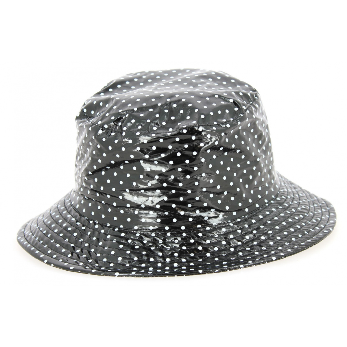Here revisited in black with white polka dots, which will bring you a great feeling of lightness, freshness and comfort. Made of 100% Polyurethane with a plasticized effect, the Amenie hat will protect you effectively from rain and can also be worn on both sides.
