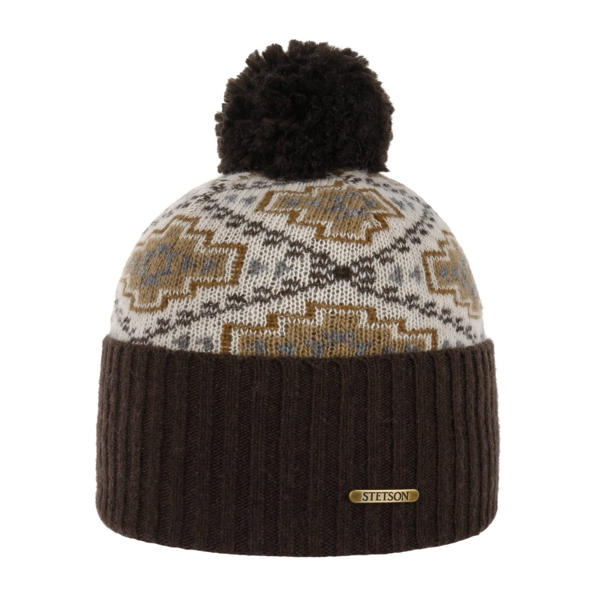 A newcomer to the range of beanies from the prestigious American brand Stetson, the Wisconsin beanie. Carefully crafted by the brand in 100% knitted wool, this beanie will become an essential accessory during the winter season. Made of two knitted wool colors intertwined, in brown shades, and with its cuff, it has an ultra-trendy chic and refined look.
