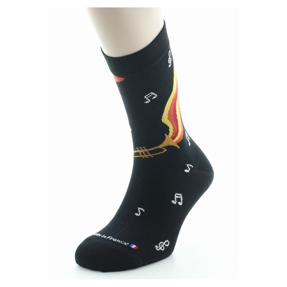 These socks are made from organic cotton, soft and breathable, to provide optimal comfort throughout the day. Their fine knit and careful finish make them both an elegant and durable accessory, ideal for lovers of style and quality. Their discreet pattern of notes and musical staves adds a touch of originality without extravagance — perfect for everyday use or as a gift for a music enthusiast.