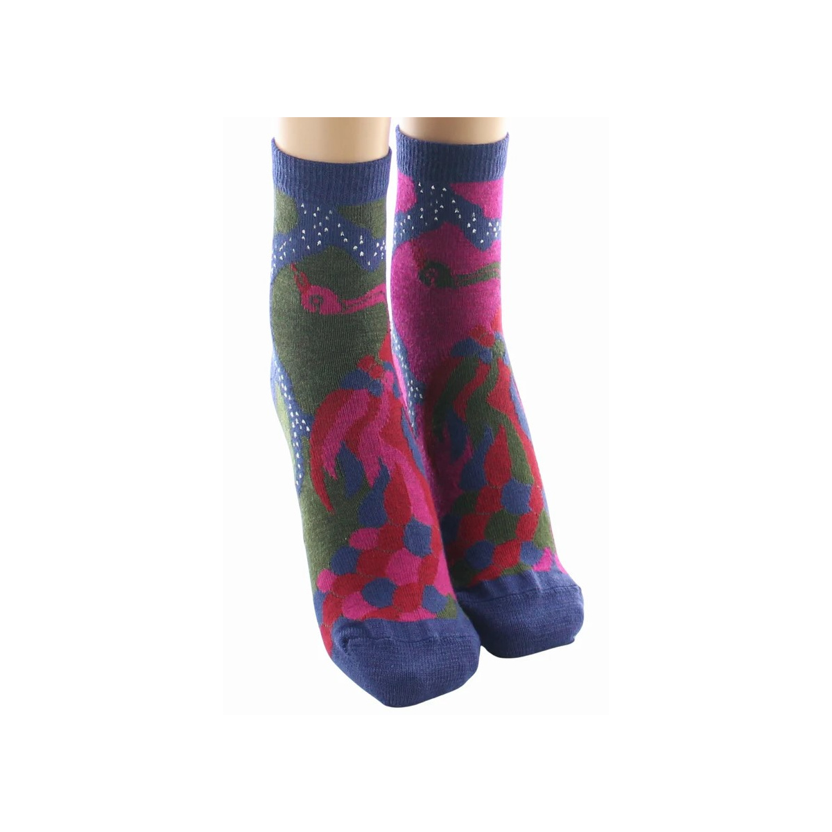 Women's Short Combed Peacock Socks Made in France - Berthe