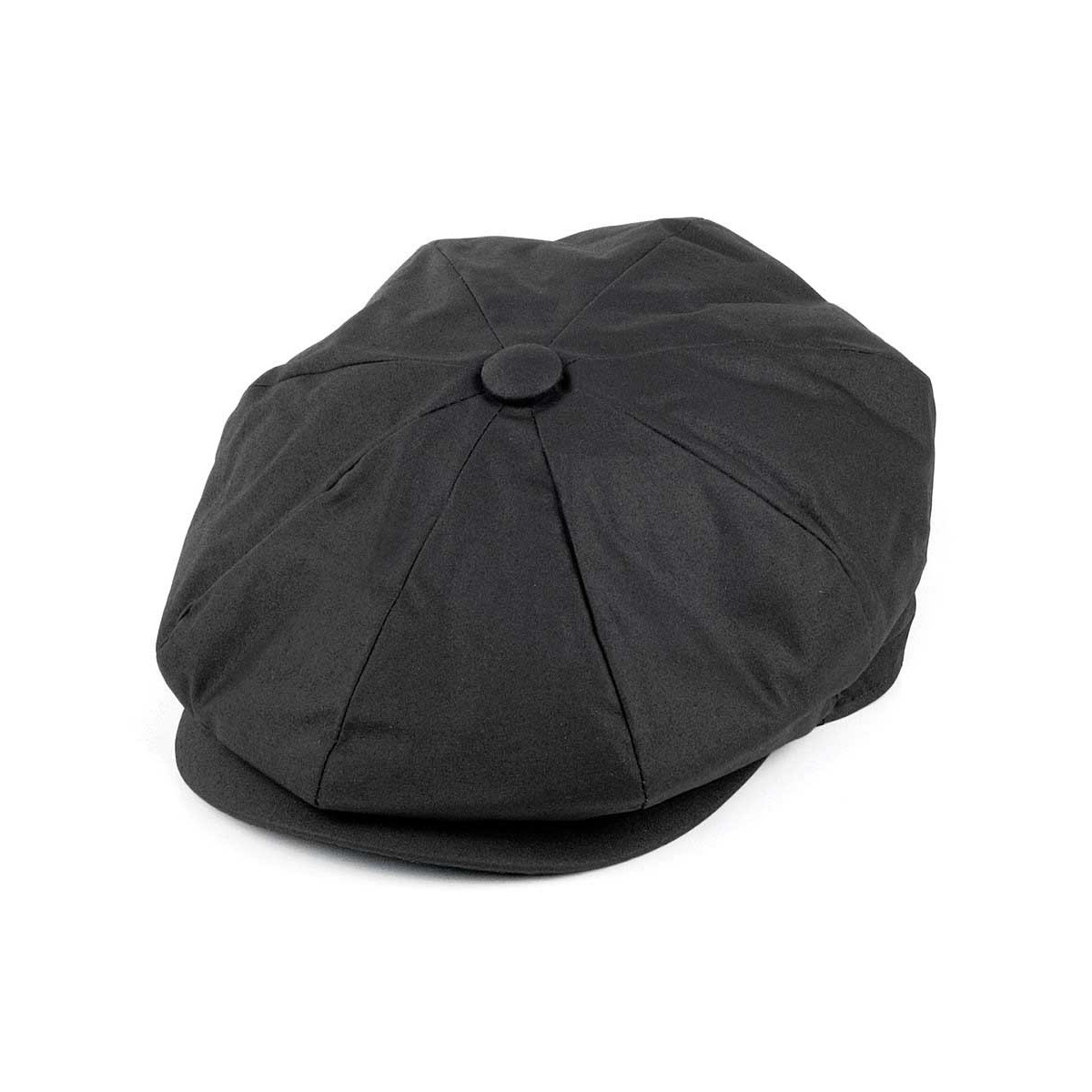 The 8-panel newsboy cap that can also be styled as a newsboy cap is made of Jaxon waxed canvas in black. A classic 8-panel style made from cotton with a visor attached by two snap buttons.