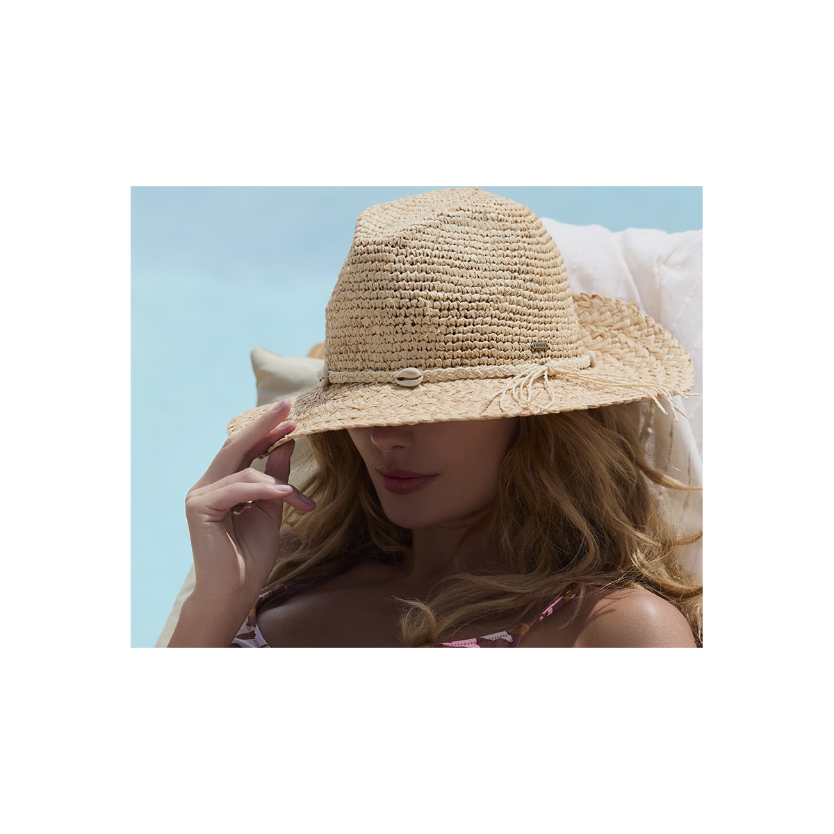A Traveller style hat, available in a summer model made of 100% straw in a natural color by the Barts brand. Known for its trendy hats, this one is no exception with its refined look for a chic and elegant style.