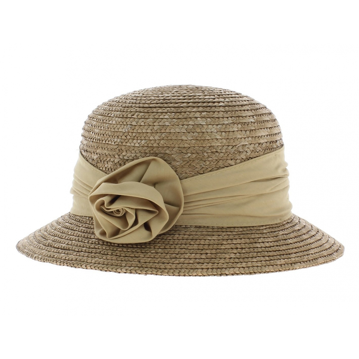 Woven in a cloche shape, this hat pays tribute to the Roaring Twenties style with a rounded crown and lowered brims. The ultimate feminine hat, the cloche shape has become a timeless must-have in any wardrobe. Decorated with a fabric flower trim, it's an elegant model that can be worn with both formal and casual outfits. Whether strutting through town or sunbathing on the beach, it's the model to adopt for a trendy style for any occasion. Its applied weaving and the refinement of the fabric trim also make it an ideal headpiece for summer ceremonies.