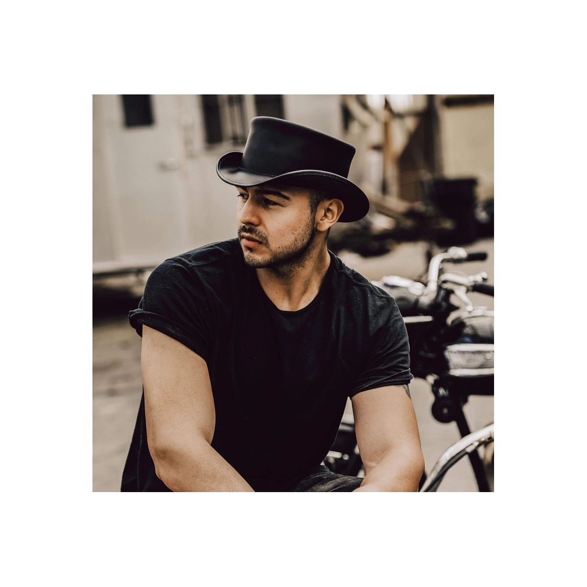 Marlow Black Leather Half Top Hat - American Hat Makers