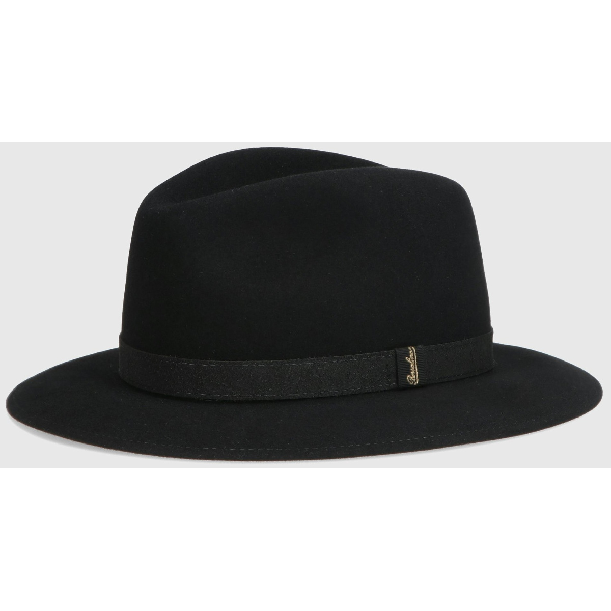 Borsalino hat Allegro model in black with matching leather trim. A handcrafted model by the Italian house, featuring beautiful finishing quality. Elegant and distinguished, it is a hat that alone is enough to dress up a city outfit.