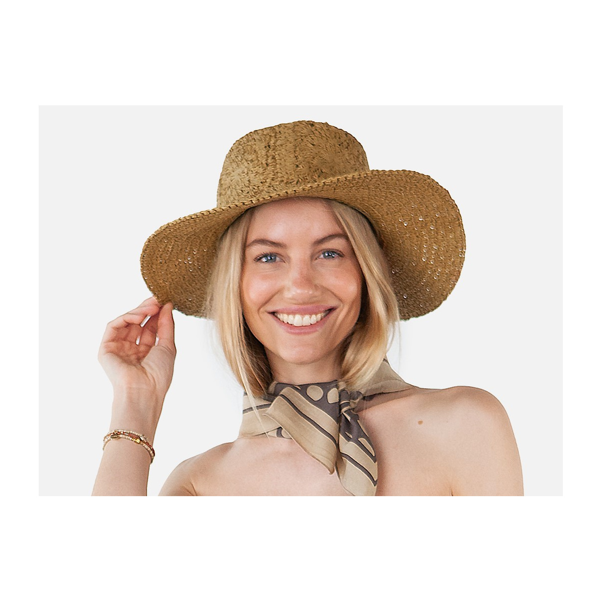 A high-quality hat made from 100% paper straw. It will bring not only style to all your outfits but will also protect you from the sun's rays with flexibility, lightness and comfort.