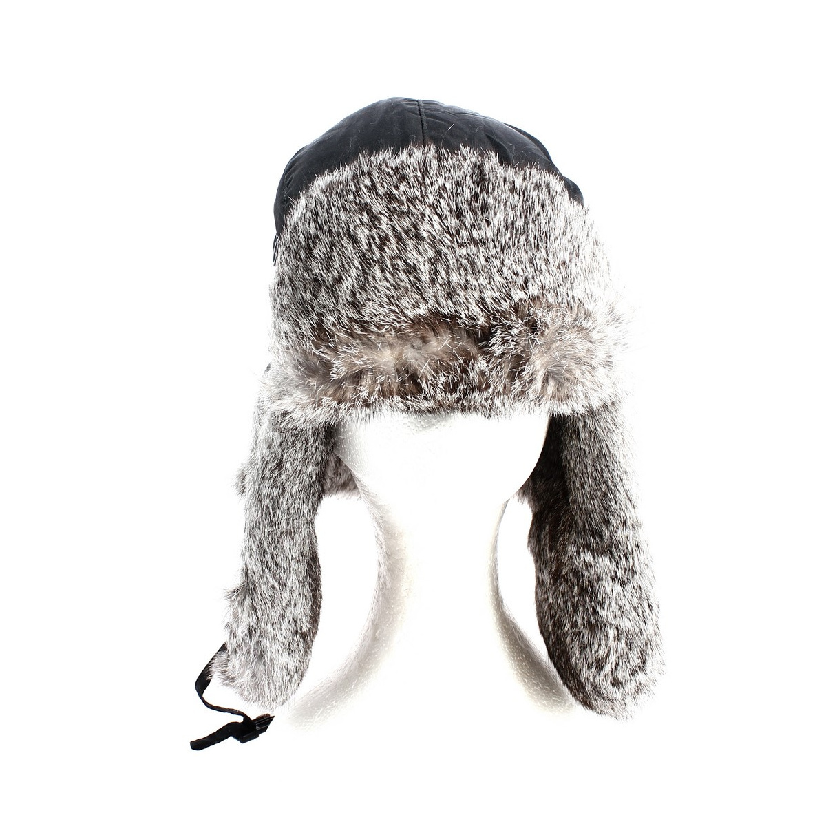 About the Black & Grey Rabbit Fur Ushanka Hat - Traclet