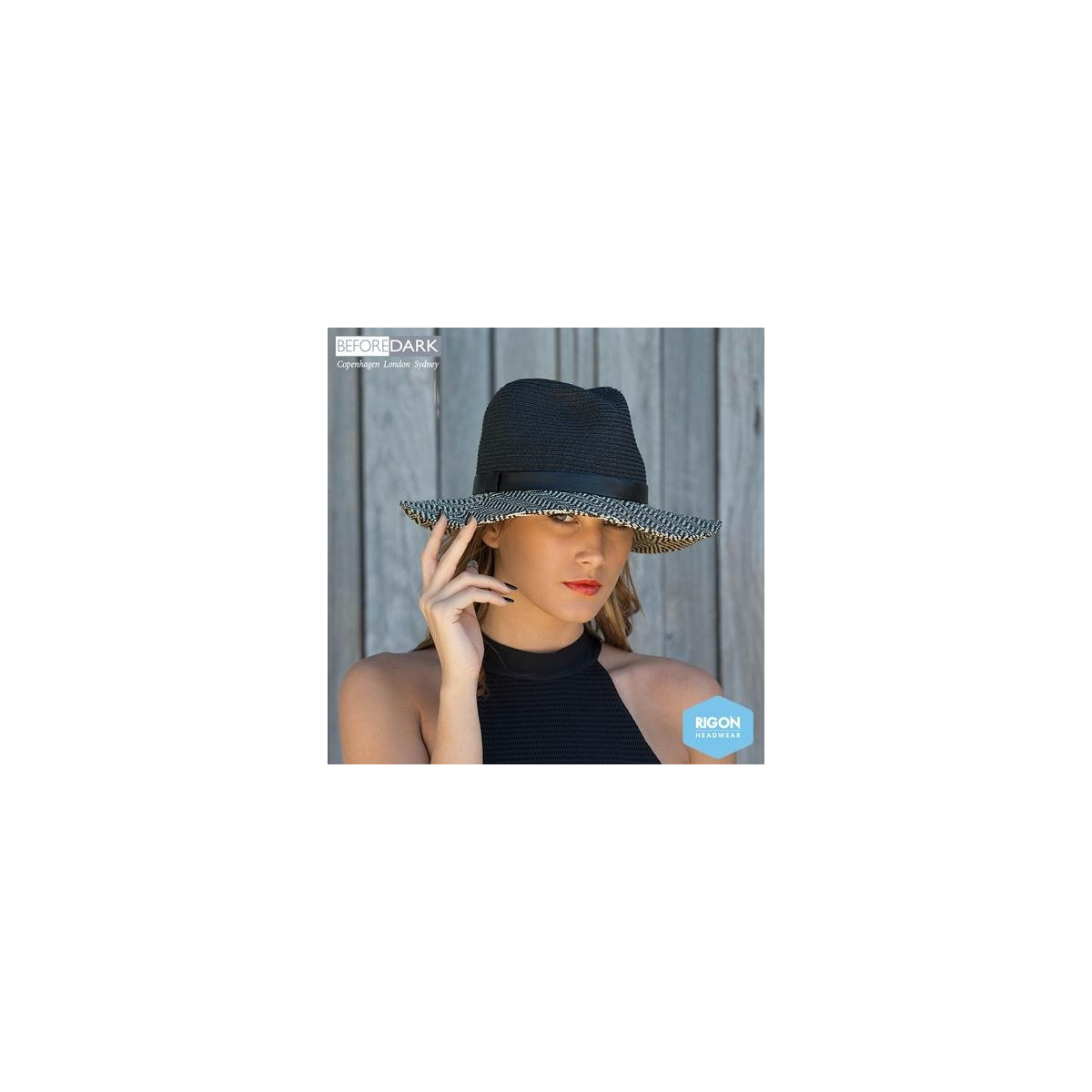 A traveller-shaped hat that will bring a chic, modern, and elegant touch to all your outfits. A shape entirely revisited by the brand Rigon Headwear, in a more modern and refined style. Made of natural fibers, it will effectively protect you from the sun's rays, with a UPF 50+ rating, a product that is also recommended by the cancer association in Australia. The Giselle hat features a black crown and beige and black chevron-patterned brims, allowing it to elegantly highlight the design. Unlined, it will allow your head to breathe even in high heat, and has an adjustable comfort band inside so that it perfectly fits the shape of your head, thus providing you with optimal comfort. A hat of beautiful quality in terms of finesse and finish and excellent value for money.