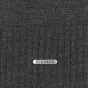 A Stetson brand beanie in gray color with a loose fit allowing the back to be folded down.