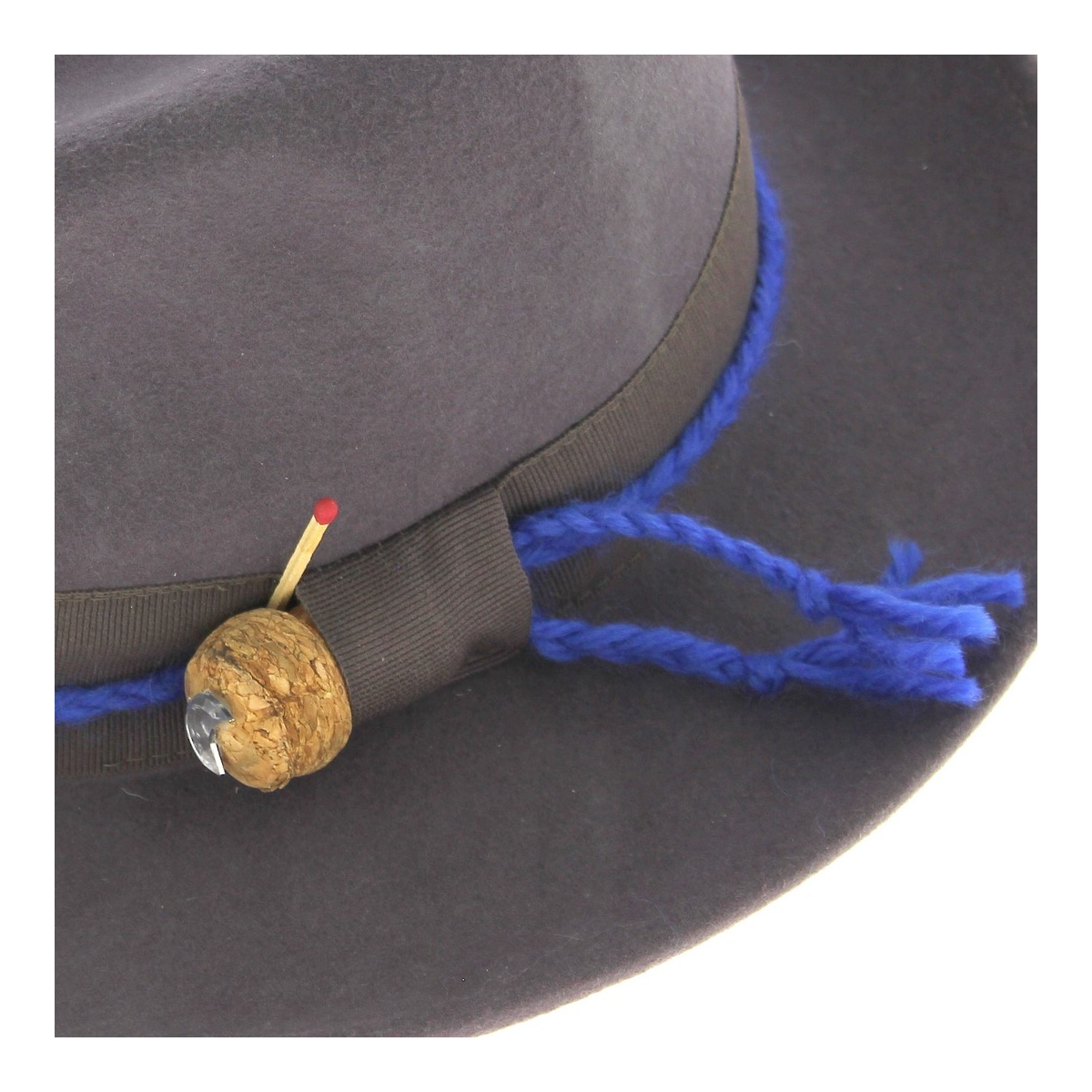 Gray champagne cork Fedora hat: Unique French creation from the TRACLET Millinery workshops. Made of wool felt, this bold hat will be a privileged ally during your outings. All eyes will be focused on you.