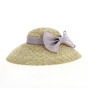 Natural straw lampshade wide-brimmed hat with violet hemp bow - TRACLET Creation