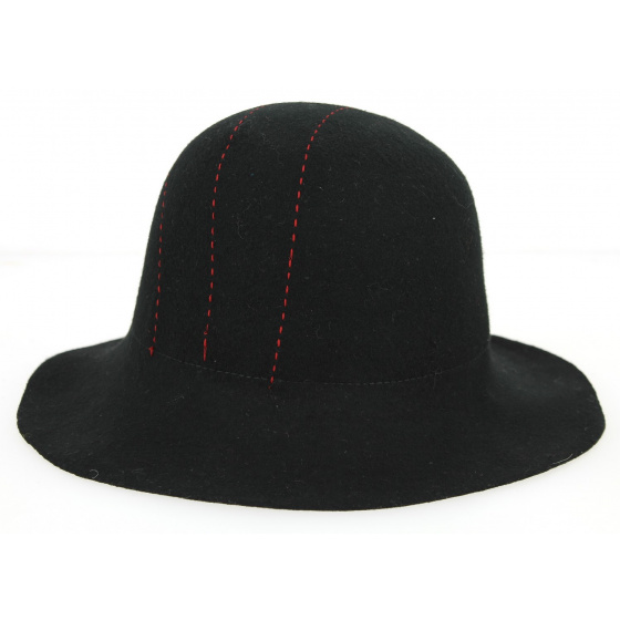The wide-brimmed hat Masaga has the advantage of being versatile enough to wear with anything. Its black color and red stitching combine beautifully while adding an original touch. This model also features a pretty bow at the back for even more chic and elegance.