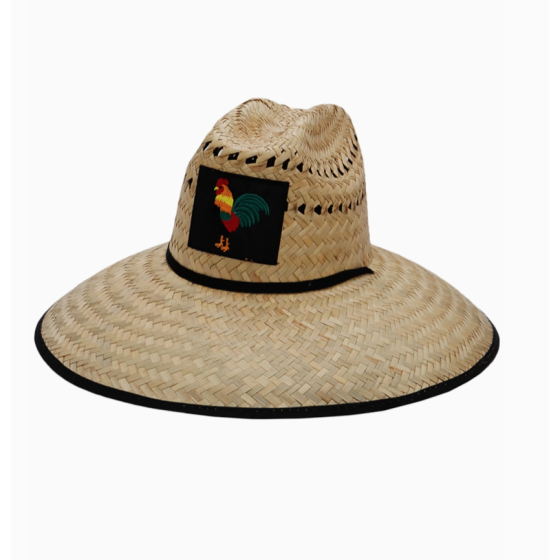 Rooster Cock lifeguard hat in natural straw with wide dome-shaped brim
