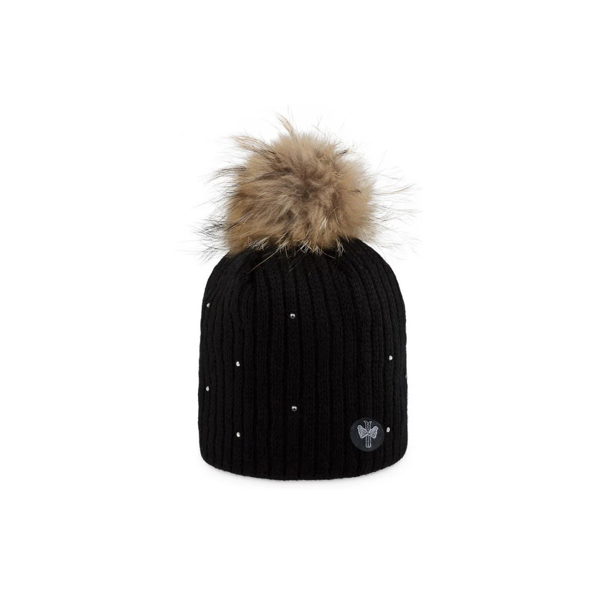 MERRY Rhinestone Pompom Beanie Black - Pipolaki