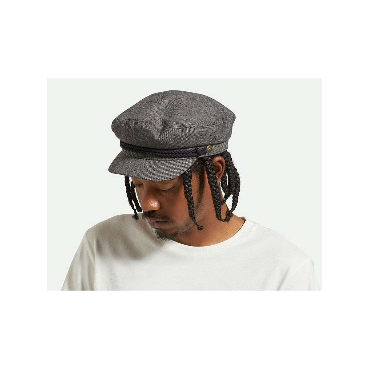 An original Sailor Cap in grey/black colors. The Fiddler cap is a must-have from the Brixton brand.