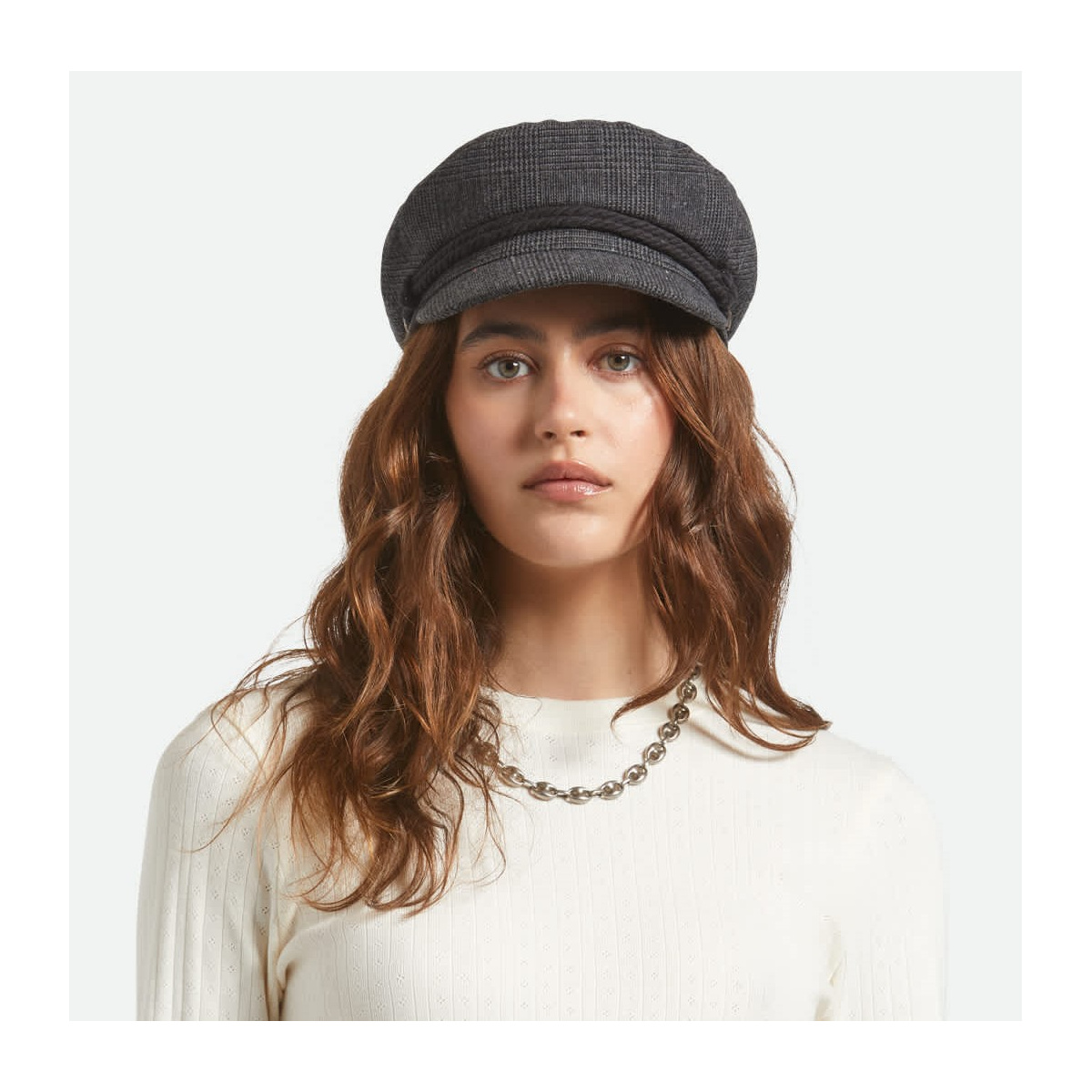 The grey Fiddler sailor cap from Brixton revisits the traditional sailor style with a modern and urban touch. Inspired by sailor headwear, it stands out with its structured shape, short visor and iconic decorative chain, signature of the Fiddler model.