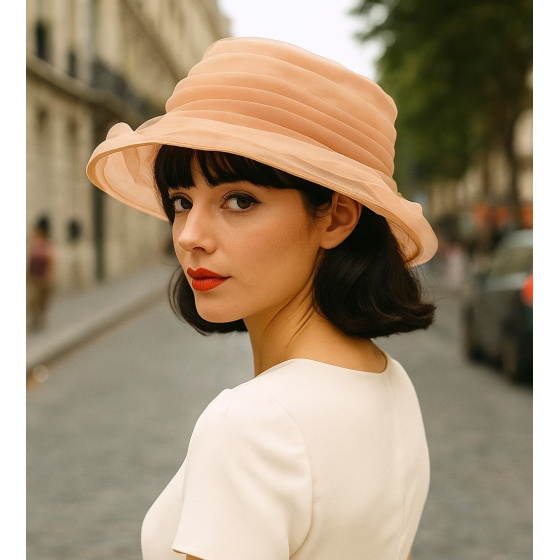 Here, ladies, is a beautiful ceremonial hat, light and trendy.