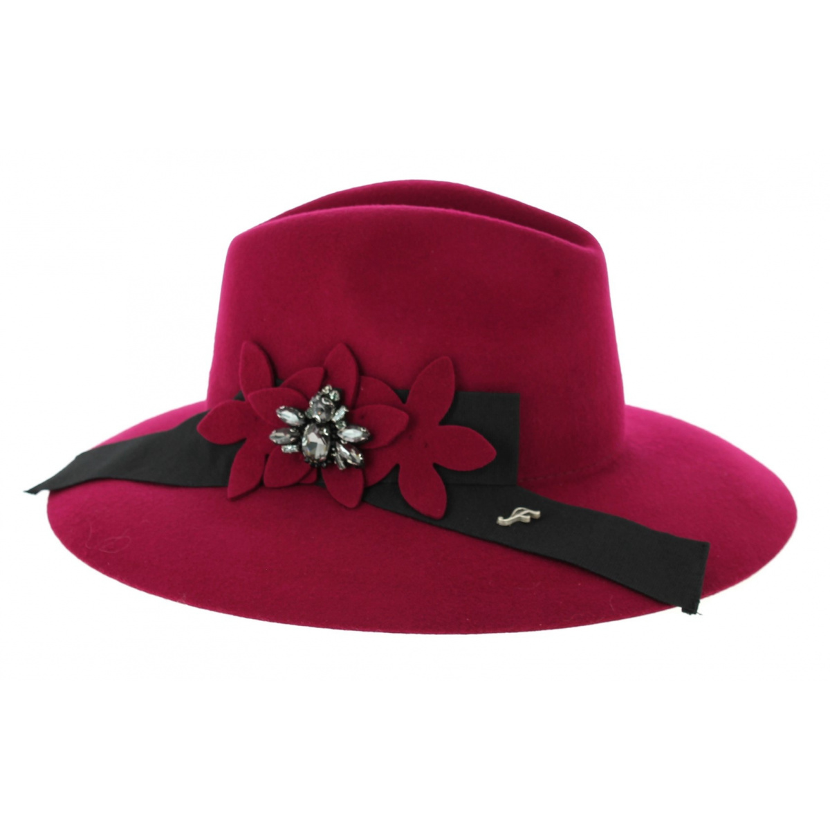 This hat is ideal if you're looking for a touch of whimsy while maintaining a certain elegance. The Cabernet model is a fedora shape with wide brims, adorned with a pretty brooch with inlaid stones, flowers, and a tied ribbon for a touch of originality. You'll love wearing it daily, whether you're going to town or strolling in the countryside.