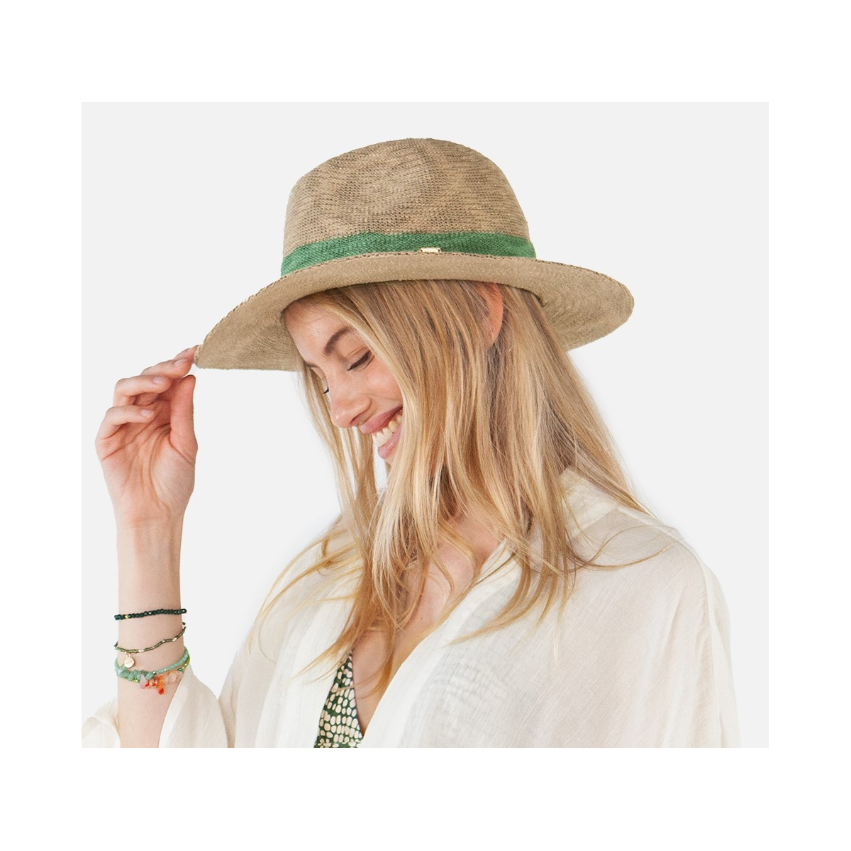 About the Fedora Hat Ponui Beige Glitter & Celadon - Barts