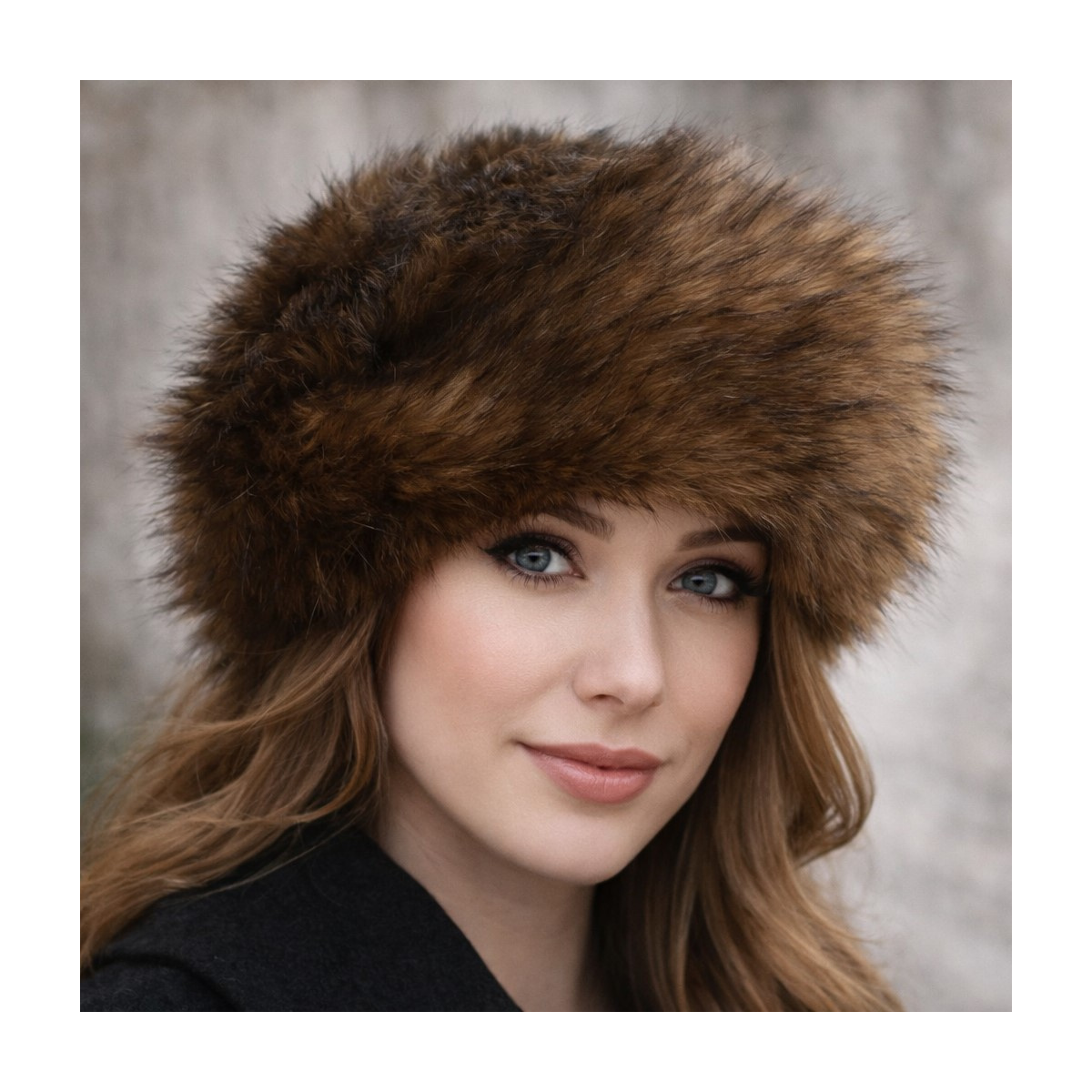A beautiful hat in tawny faux fur to match many winter outfits. An elegant and chic headwear for this winter season.