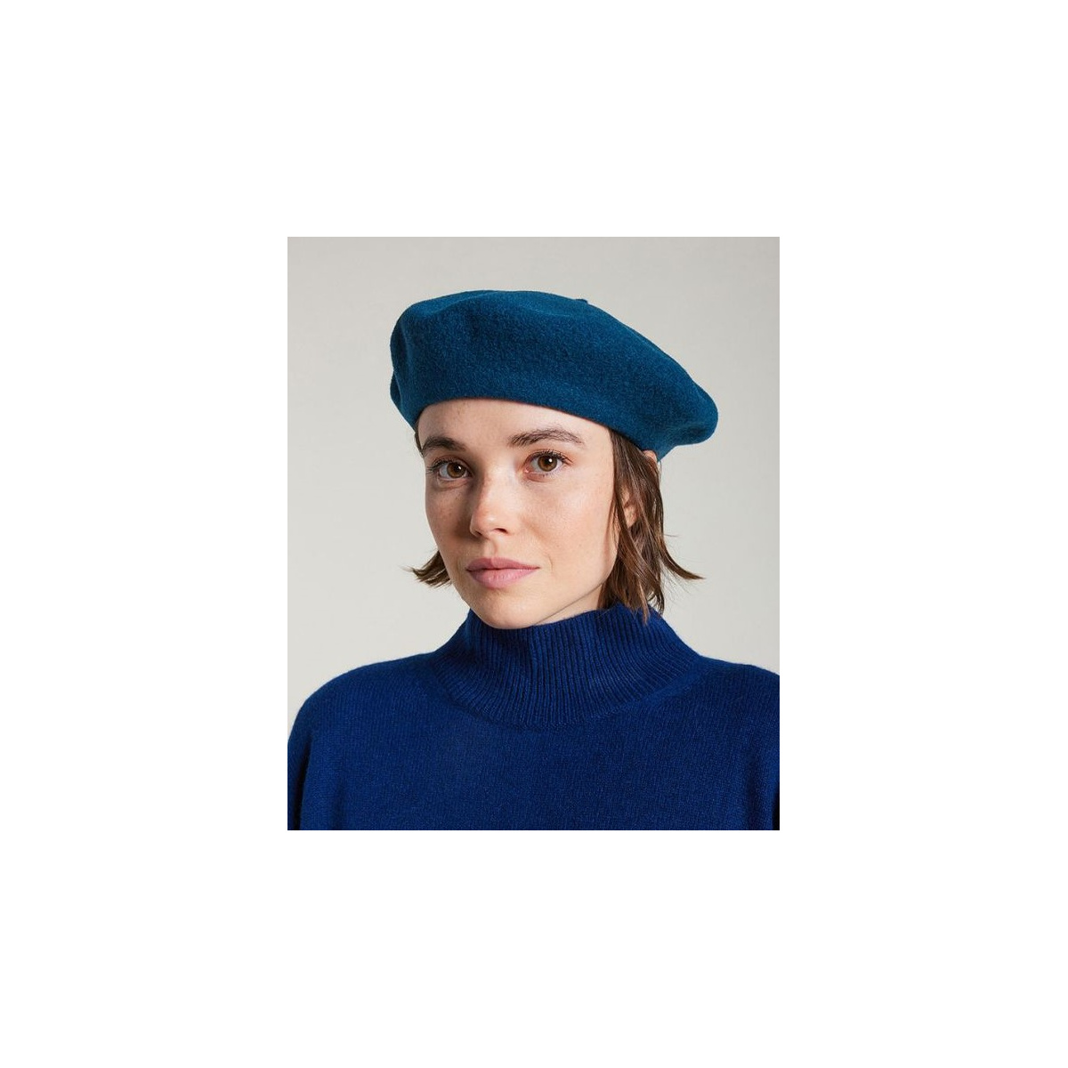 Porté sur le côté, légèrement en arrière, à plat ou bouffant, le béret s'adapte à tous les styles. Ce béret de coloris bleu paon, couleur somptueuse et élégante, saura apporter la touche de couleur.