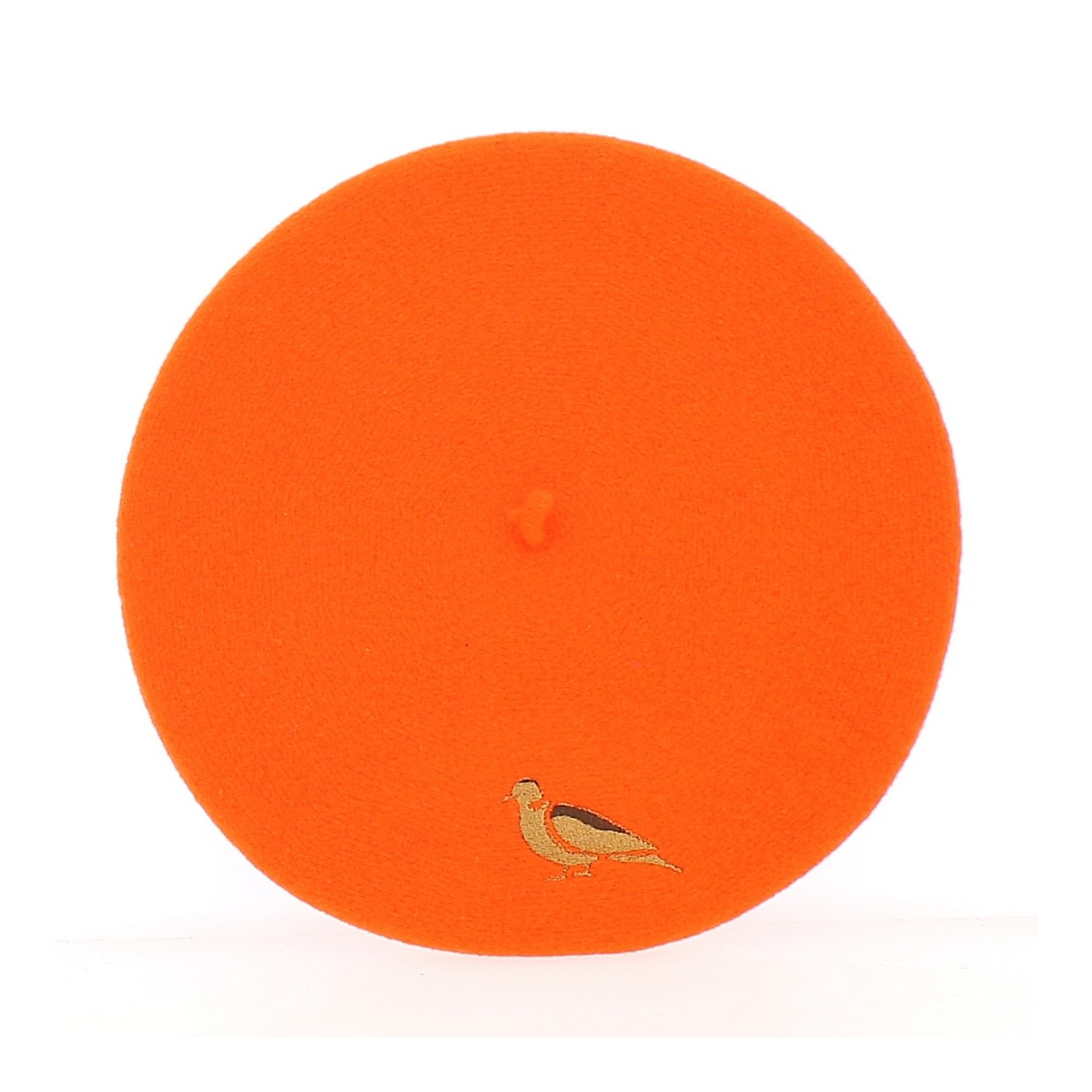 Un béret de qualité fabriqué en France en feutre laine. En coloris orange, il a été conçu pour les chasseurs afin qu'ils soient visible de loin.