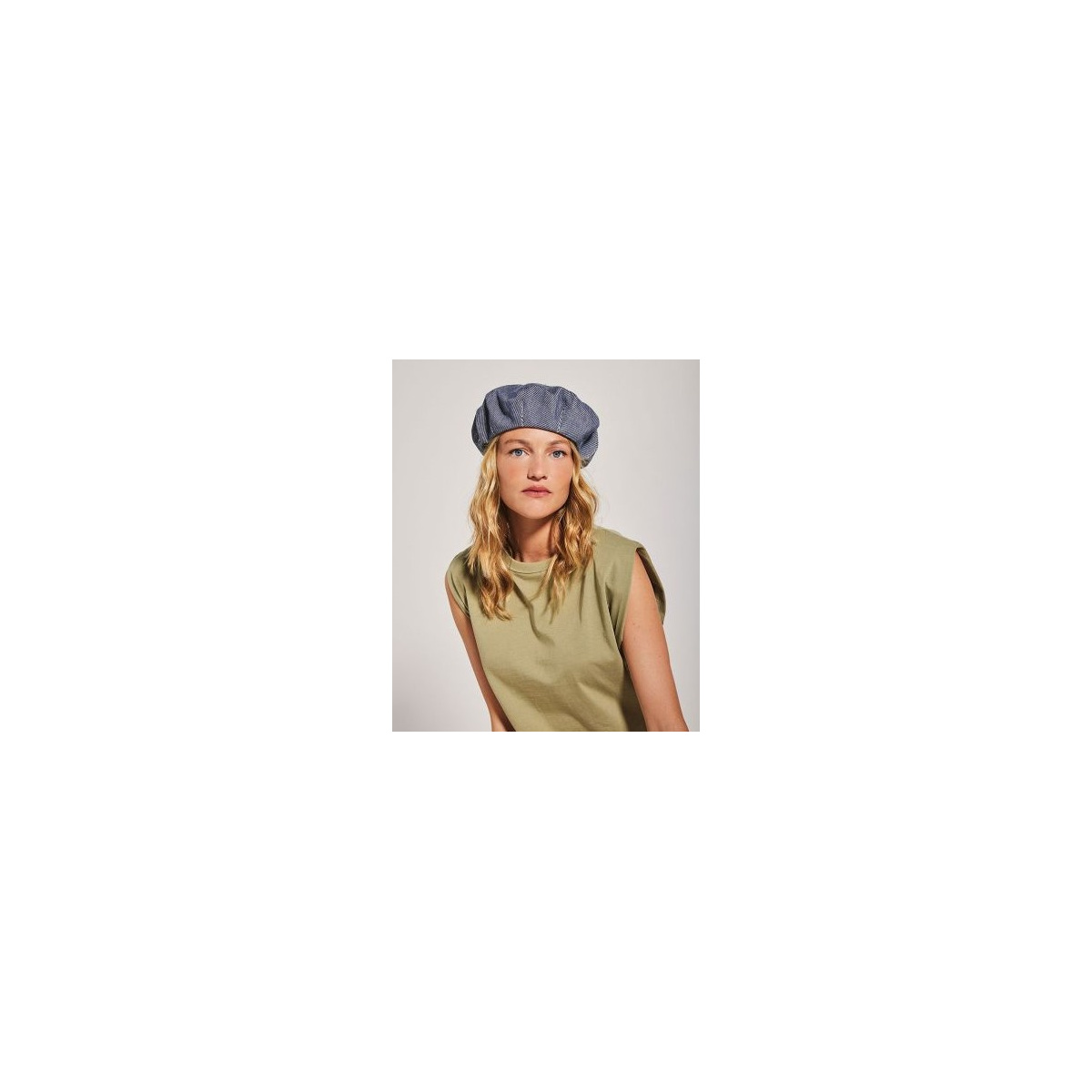 Le béret Jean de Laulhère, 100 % coton, léger, mixte et protection UPF 50+, au rendu denim urbain. Ajustable et facile à porter.