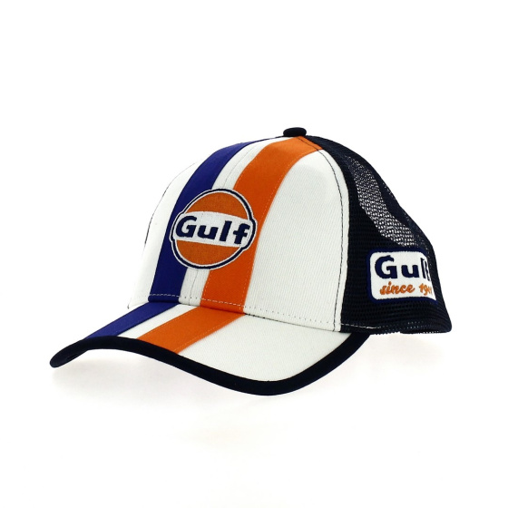 Une casquette Gulf en coloris marine, avec des détails en raye bleu et orange sur le surfacé de l'arrière blanc. . Un modèle qui pourra parfaitement vous aller , notamment grâce à sa taille unique.