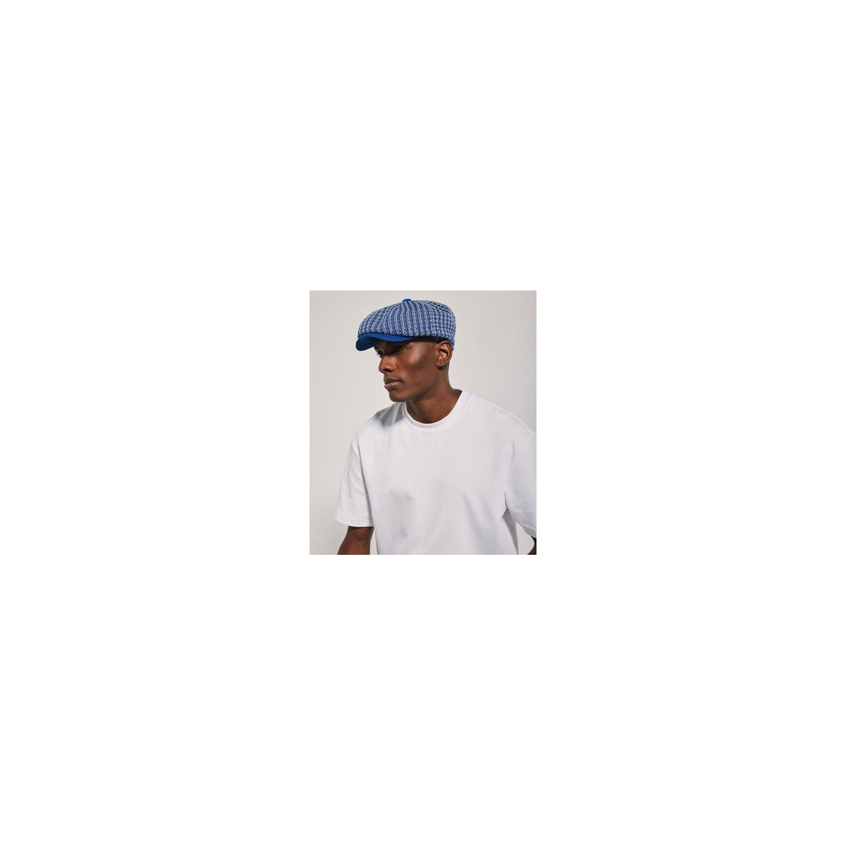 La casquette Beltxara bleu et perle par Laulhère, avec son motif pied-de-poule et son subtil contraste bleu et perle, allie style vintage, confort 100 % coton et finitions soignées pour un look élégant au quotidien.