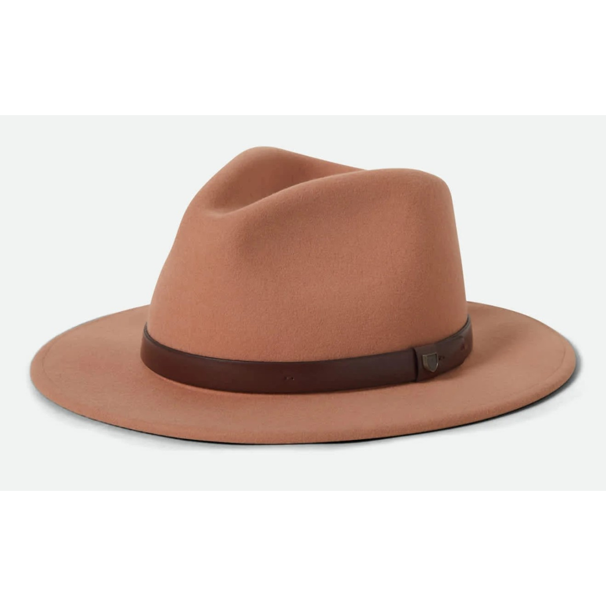Chapeau Brixton messer ; un chapeau en feutre laine coloris bison disposant d'une calotte forme goutte d'eau; sa forme bord traveller est un passe partout.
