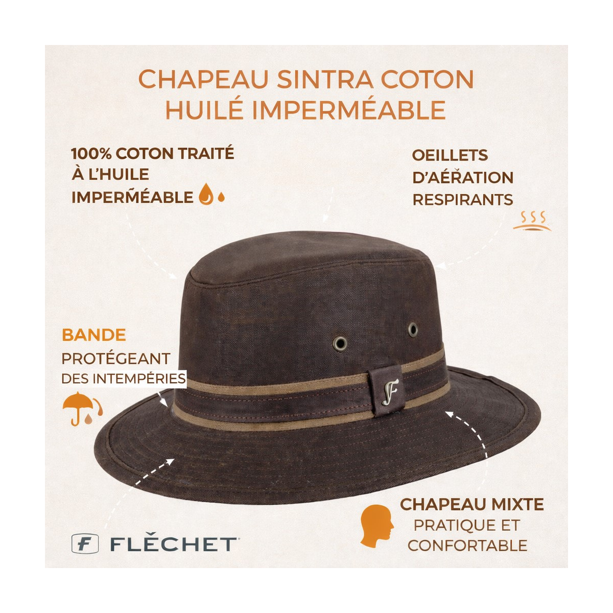 À propos du Chapeau Sintra Coton Huilé Imperméable Marron - Flechet