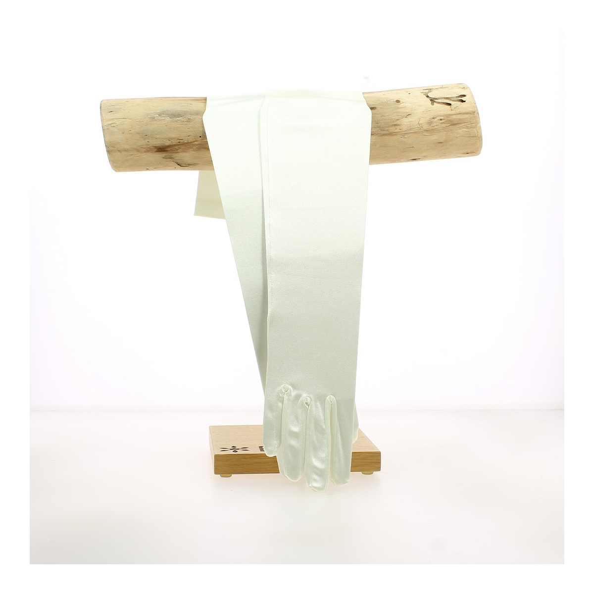 Gants long en lycra brillant crème nacré - Chapellerie Traclet - France