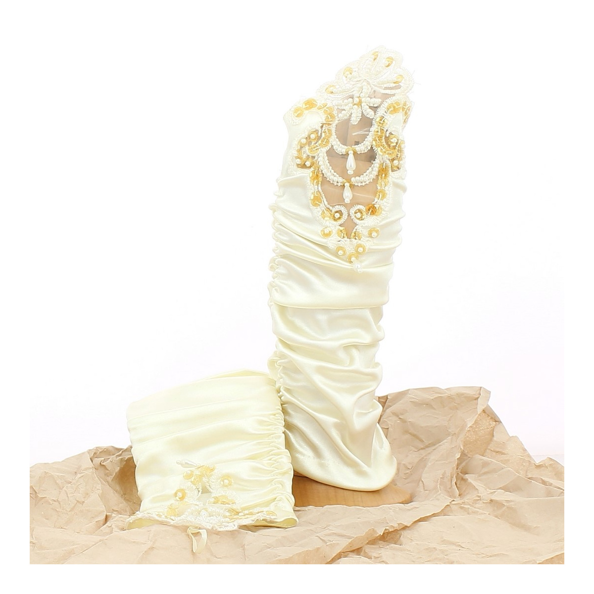Gants de cérémonie mi-long en lycra brillant (blanc ou crème) avec ses perles - Chapellerie Traclet - France