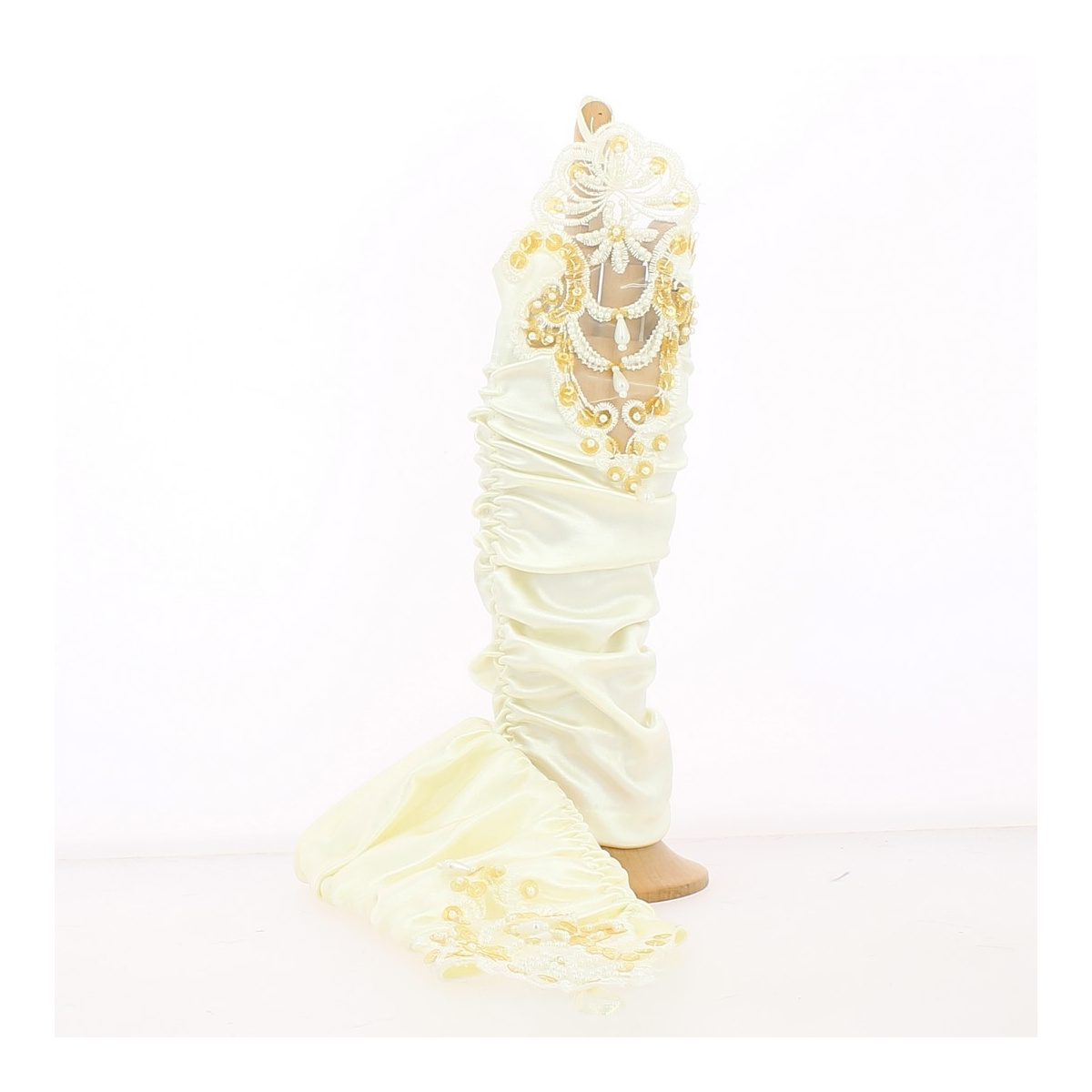 Gants un doigt de cérémonie mi-long en lycra brillant blanc ou crème avec ses perles