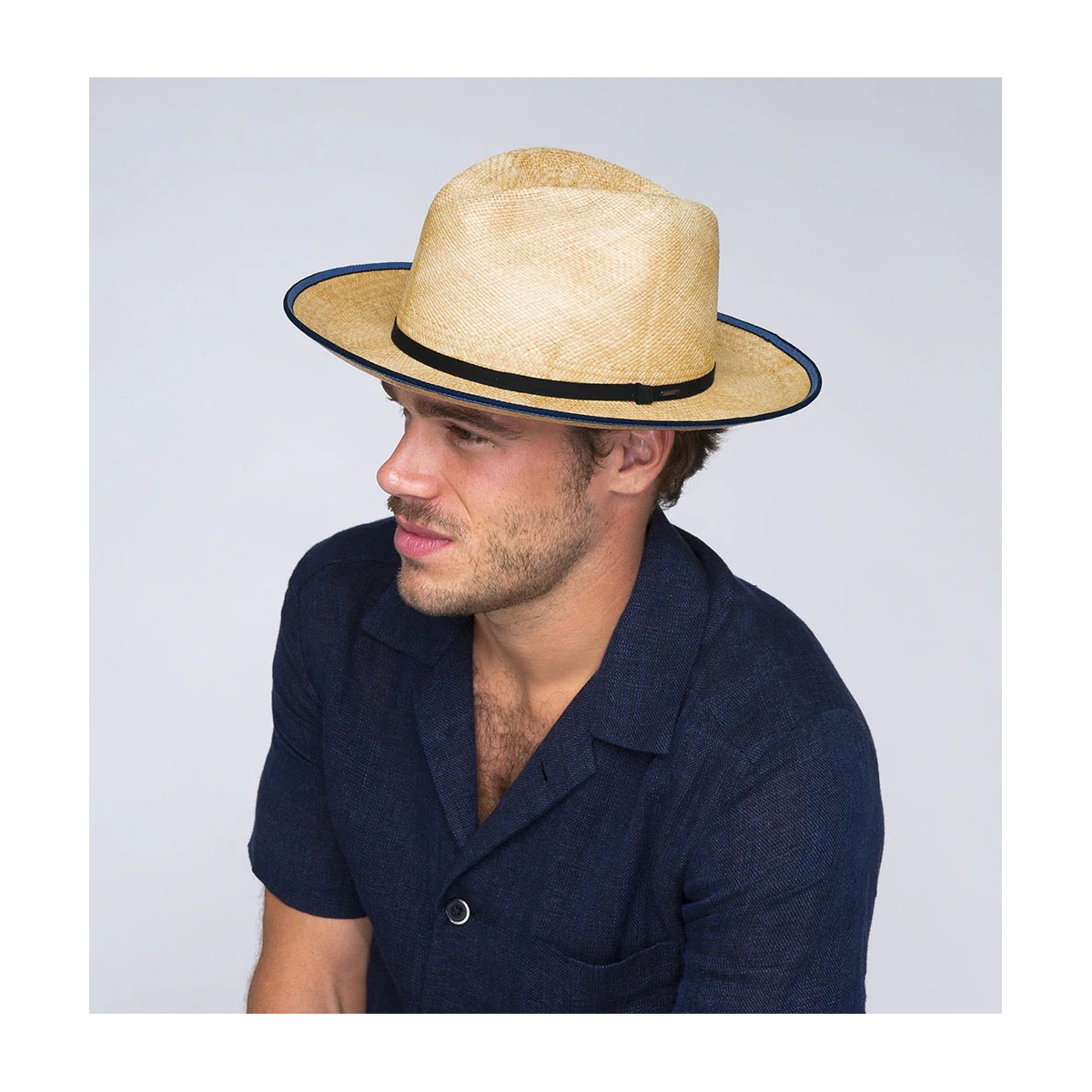 Le chapeau Parson est un classique de la forme Fedora en Panama, avec une influence occidentale. Ce chapeau panama est décoré d'une bande de chapeau en sangle et fini avec un bord de couleur contrastante. Le Parson est doté d'un bord moyen qui peut être relevé d'une calotte avec gros grain en tissu.